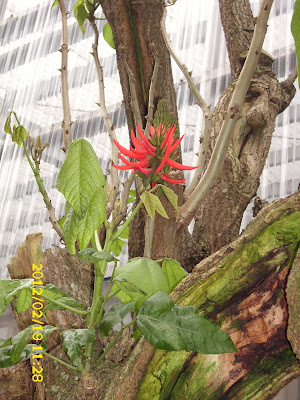 火炬刺桐 豆科[蝶形花亞科] 刺桐屬 別名:象牙紅''落葉喬木,樹幹 枝條__著生銳刺,3出複葉,總狀或圓錐花序,花色多紅或橙色,喜全日照不耐寒,極耐旱,種子具毒性。