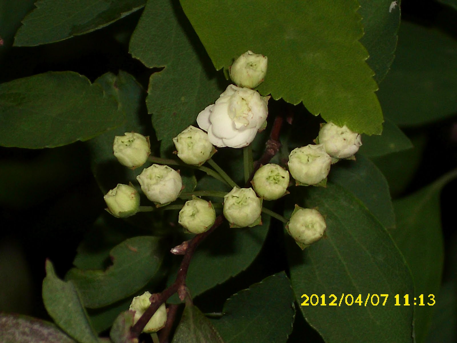 麻葉繡球[重瓣] 薔薇科 繡線菊屬 ‧別名: 重瓣麻葉繡球、重瓣麻毬、針珠花、重瓣麻花、麻葉繡線菊、麻葉繡球花、小粉團、石棒子 '''落葉小灌木,中部以上呈彎曲形,赤褐色。葉互生,廣披針形至菱形,基部楔形,上部疏生細齒,先端銳頭而基部緩斜,兩面光滑無毛,葉背為綠白色。繖形花序,花純白色,花瓣多層,簇生於枝頂,呈球形的花序排列,萼片呈三角形,光滑無毛。蓇葖果,果熟期 10~11 月。
