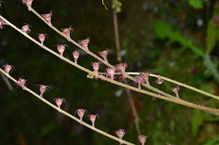 台灣嗩吶草 虎耳草科 嗩吶草屬 多年生草本,被毛,根莖長匍匐狀。單葉,根生,具長柄;闊卵狀披針形或三角狀心形,革質,葉基心形,葉尖睿尖,葉緣深鋸齒緣,具 5~7 不明顯缺裂,裂片三角狀銳尖;托葉薄膜質,近圓形,光滑,邊緣具纖毛。花序為複總狀花序,花徑密被棕色茸毛;花多數,具短梗;花萼鐘形,5 裂,銳三角形,被腺毛;花瓣 5 片,線狀錐形,被腺點;雄蕊 5 枚;柱頭 4 裂。果實為蒴果,2 裂,裂片膜質;種子長約 0.1 公分,多數,橢圓狀紡錘形。花期 3~10 月。
